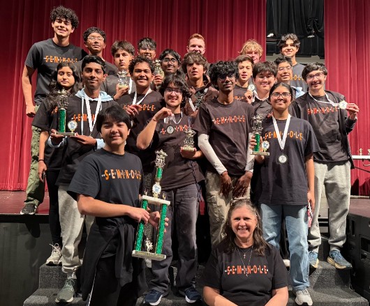 20 members of Seminole High's Mu Alpha Theta Mathematics National Honor Society, under the leadership of Dr. Kristen Springfield, competed in their first regional competition and earned first place overall. Students participated in multiple categories, including Precalculus, Calculus, Statistics, and Algebra 2.