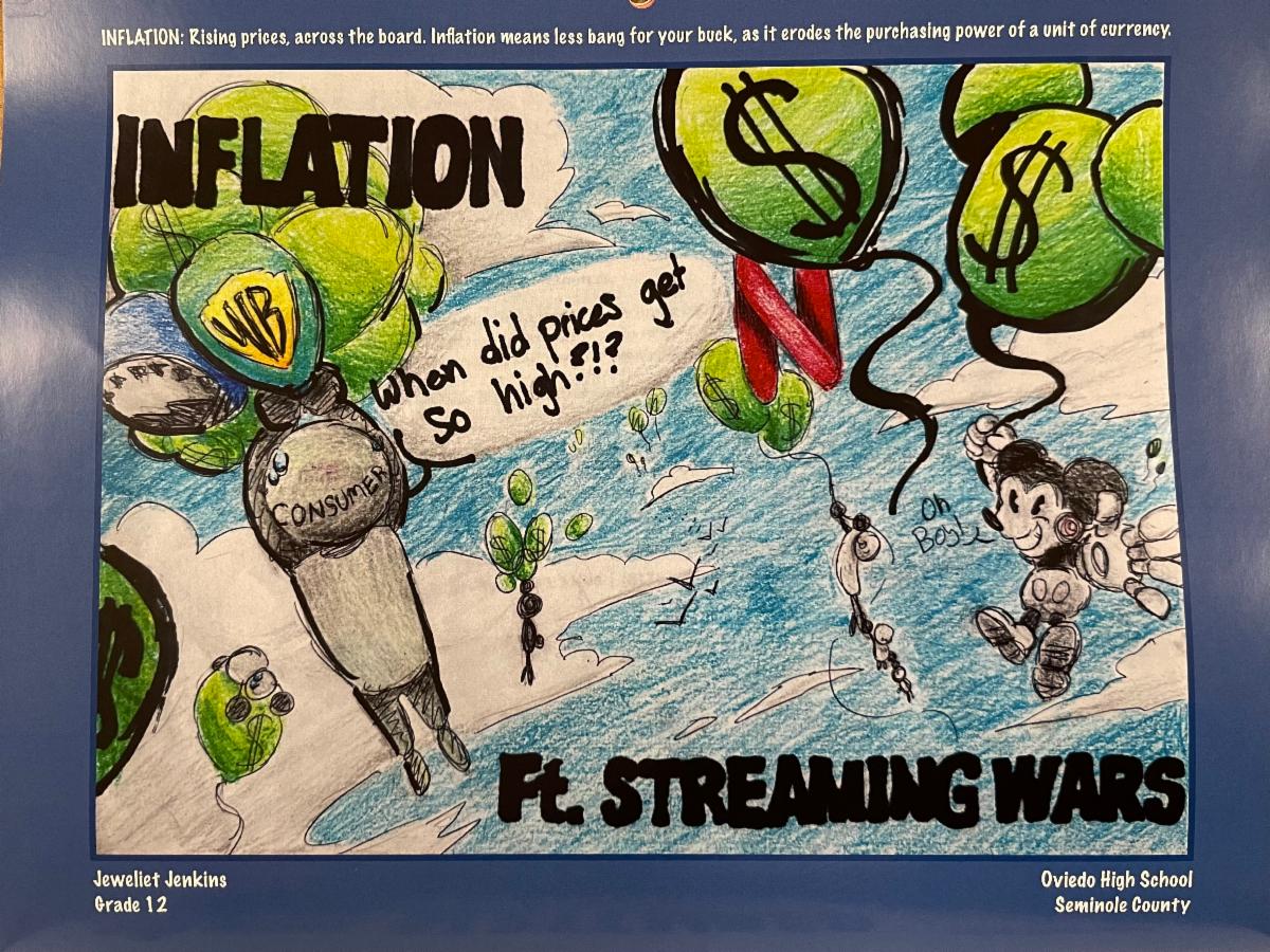 An Oviedo High student, Jeweliet Jenkins, recently won an economic-themed art contest sponsored by the Florida Council on Economic Education! Her submitted artwork was selected as one of only twelve winners statewide, and she was the only student from Seminole County to receive this recognition.