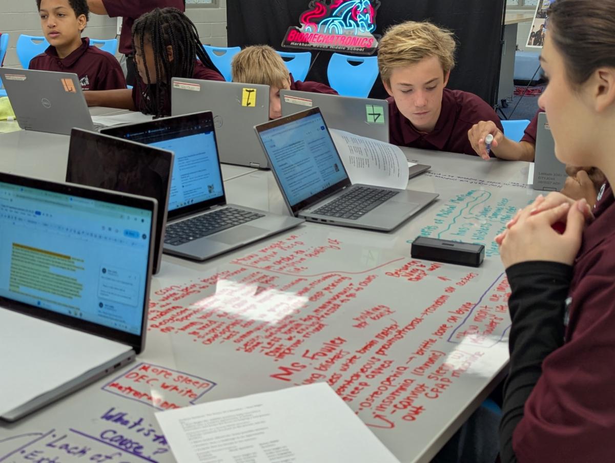 Markham Woods Middle's Biomechatronics Capstone students recently hosted a collaboration session with STEM students from Apopka Middle School. This continues their work with Project Invent, a nonprofit organization whose mission is to empower students with 21st-century skills to become fearless, compassionate problem solvers by inventing technologies that address real-world challenges.