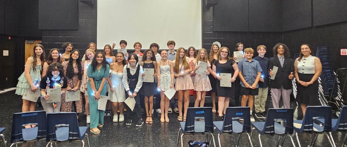 Congratulations are in order for 26 student performers at Lawton Chiles Middle School, who were officially inducted into the International Thespian Society after earning qualifying points throughout the school year. These points reflect their hours of rehearsal, stage time, behind-the-scenes work, and contributions to the overall success of the drama program.