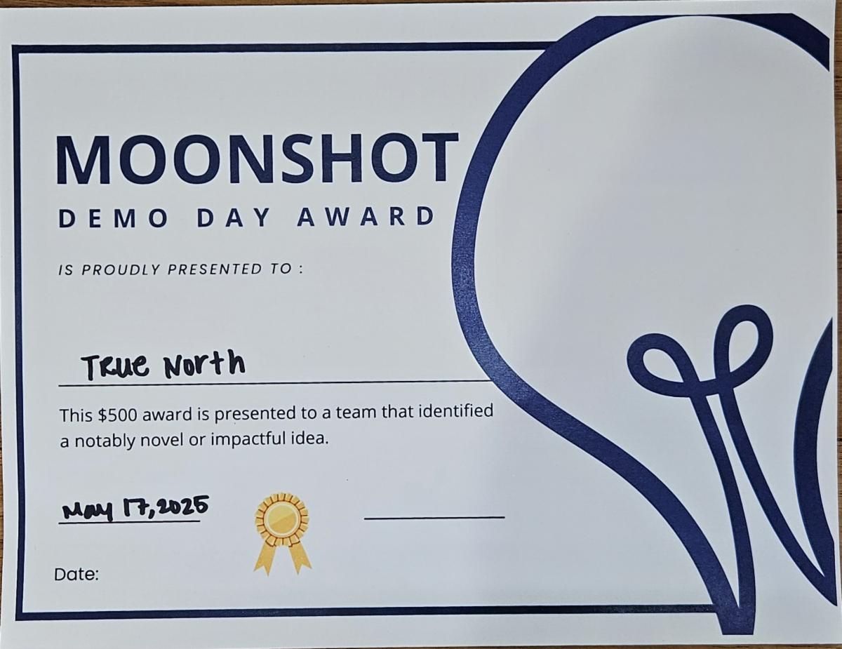 Following their outstanding and innovative presentation, the team has been recognized with the "Moonshot" award from Project Invent for their presentation and prototype. They received a $500 award, and this qualifies them to compete virtually at National Innovation Day this summer. Here, their prototype could earn a provisional patent!