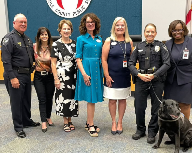 Congratulations are in order for Officer Pierce and her K-9 comfort partner, Xander who serve at Lawton Chiles Middle School.