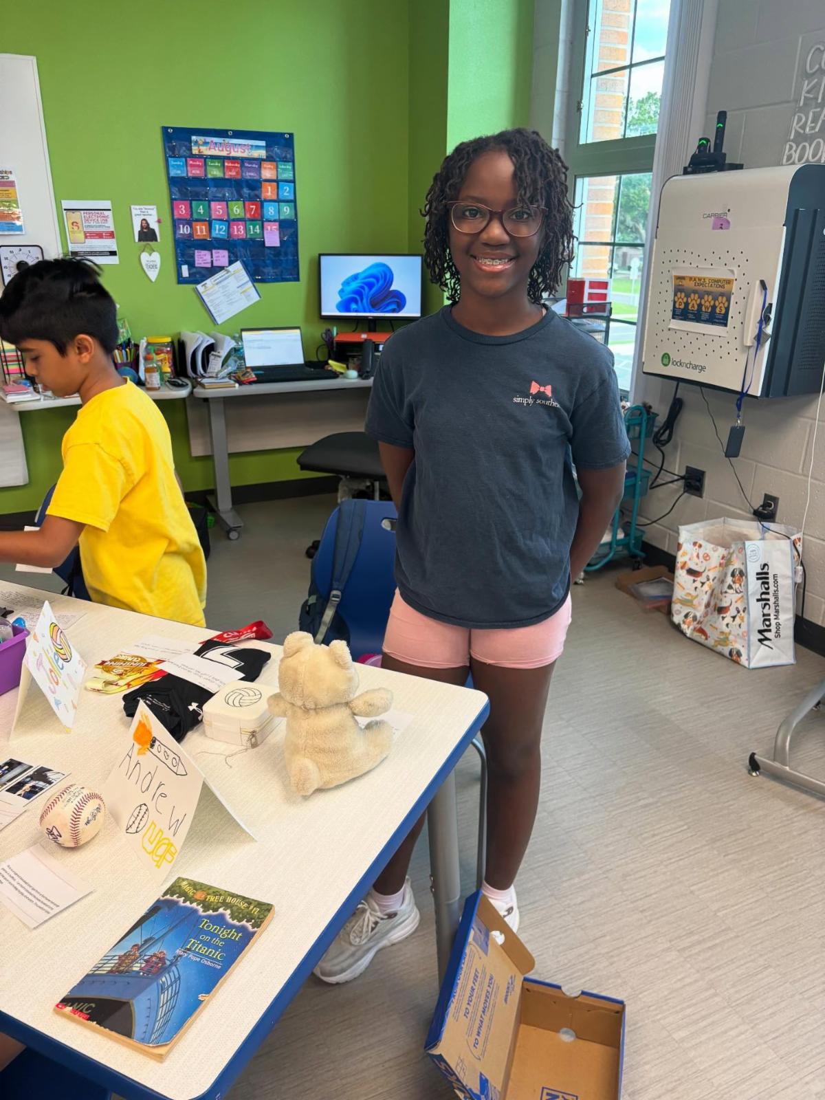 Ms. Dark's students at Lawton Elementary set up a "Me Museum" to give their friends a chance to learn more about them. Each student brought in items that represent who they are and wrote descriptions on index cards explaining how each item reflects their identity.
