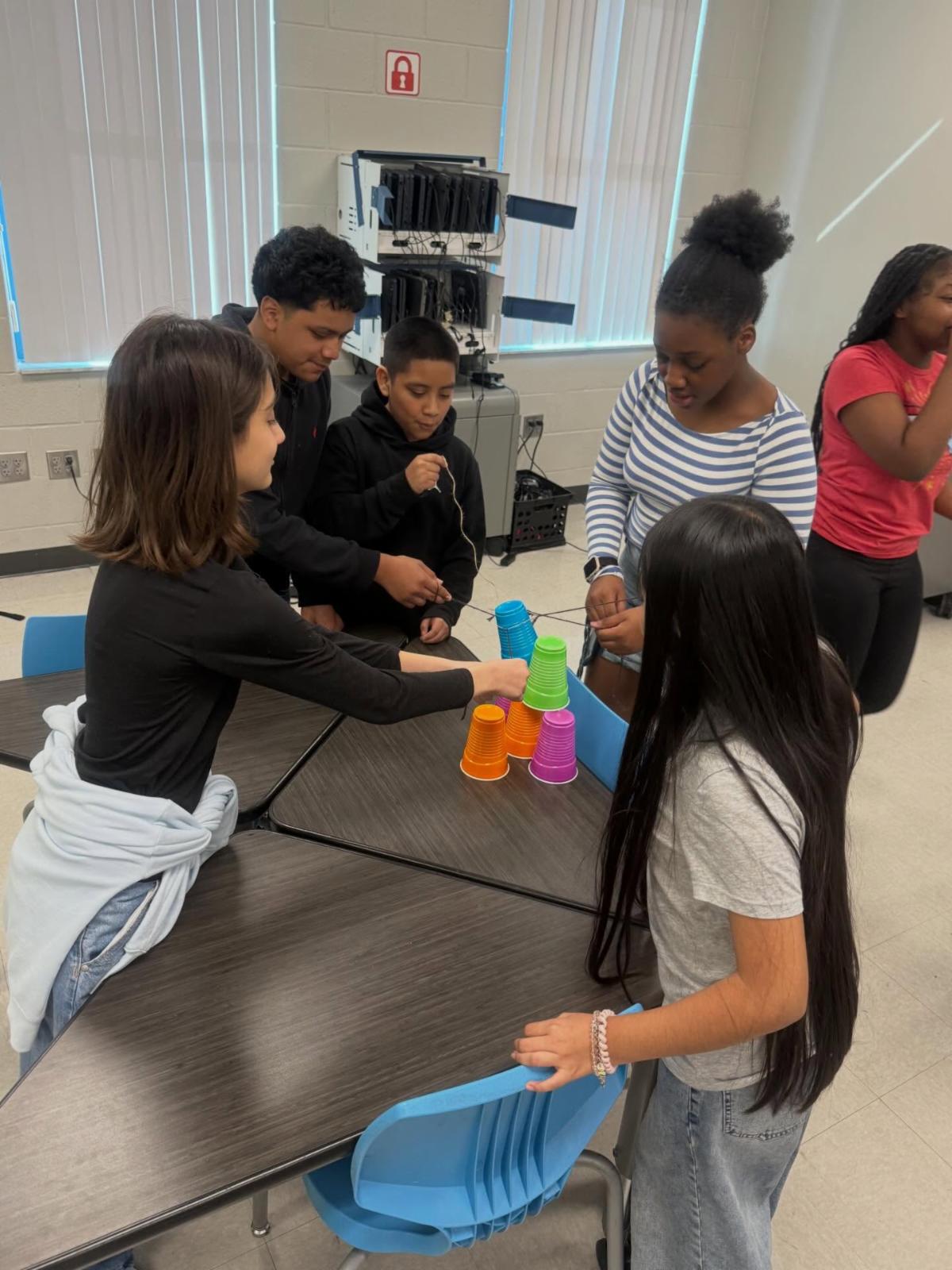 At Millennium Middle School, Ms. Dixon’s 6th-grade LEAP Learning Pathways students put the Engineering Design Process into action through a fun, hands-on cup stacking challenge.