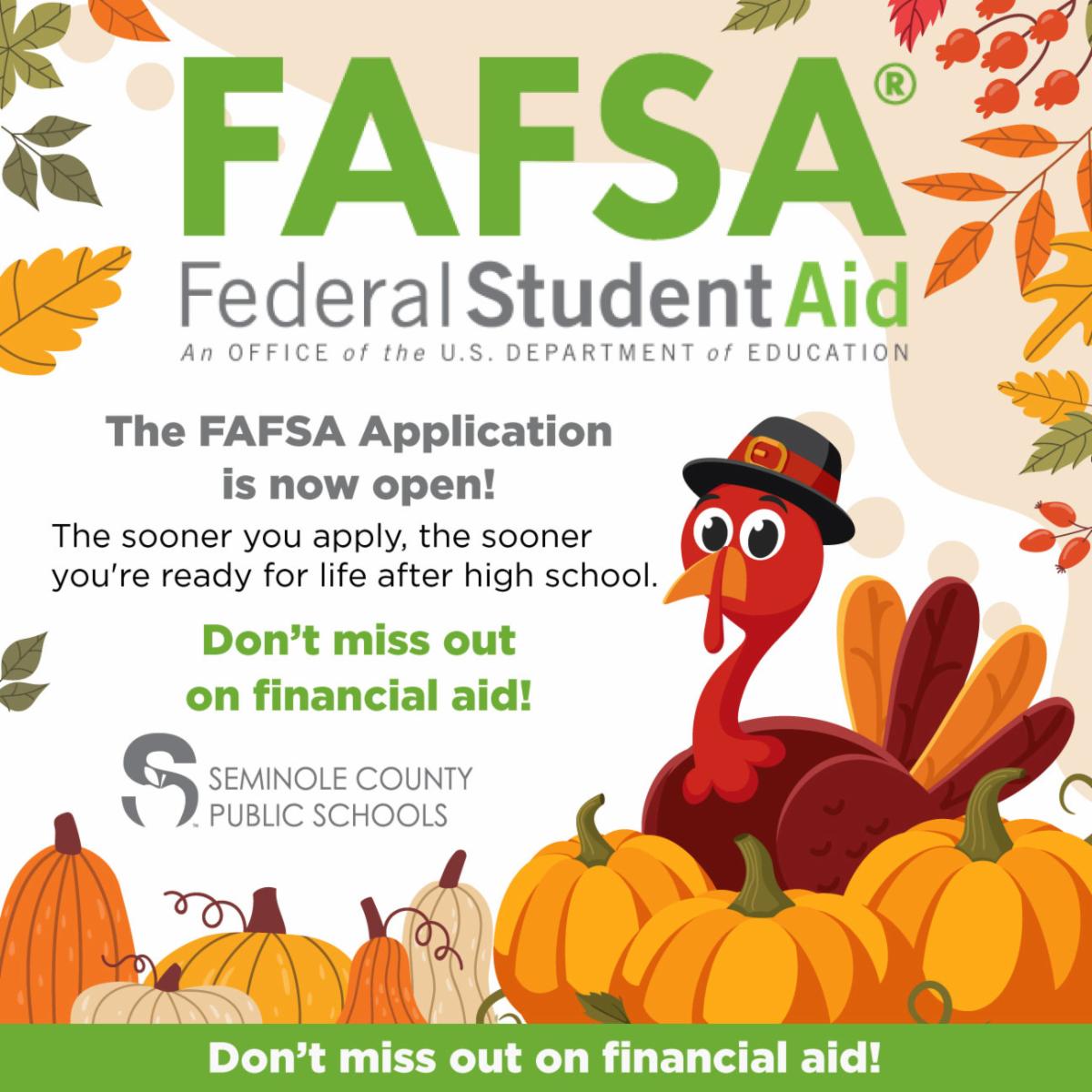 Class of 2026, It's giving season. Give yourself the gift of financial aid! The Free Application for Federal Student Aid (FAFSA) is now open. Completing the FAFSA is a critical step in accessing federal, state, and institutional financial aid for college, career school, or trade programs.