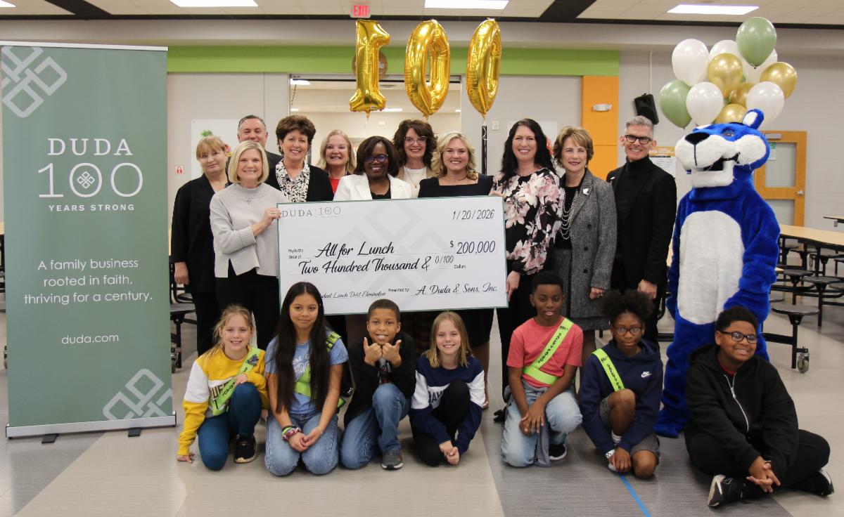 As part of its 100th anniversary celebration, DUDA, an Oviedo-based, fifth-generation, family-operated agriculture and real estate company, recently donated $200,000 to ‘All for Lunch’ to eliminate lunch debt for Seminole County students who qualify for free or reduced meals.