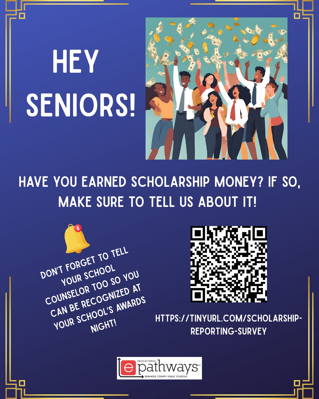Hey Seniors! Have you earned scholarship money for college? We want to celebrate your hard work and achievements! Make sure Seminole County Public Schools knows about your scholarships by completing the scholarship reporting form.