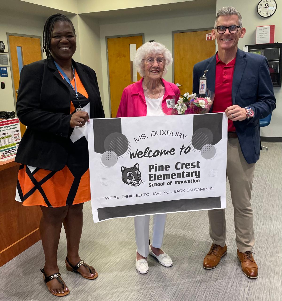 This week, Pine Crest Elementary School of Innovation welcomed Doris Duxbury back for a tour of Pine Crest Elementary School of Innovation. Ms. Duxbury, a retired Seminole County educator, taught at Pine Crest for ten years in the 1960’s.