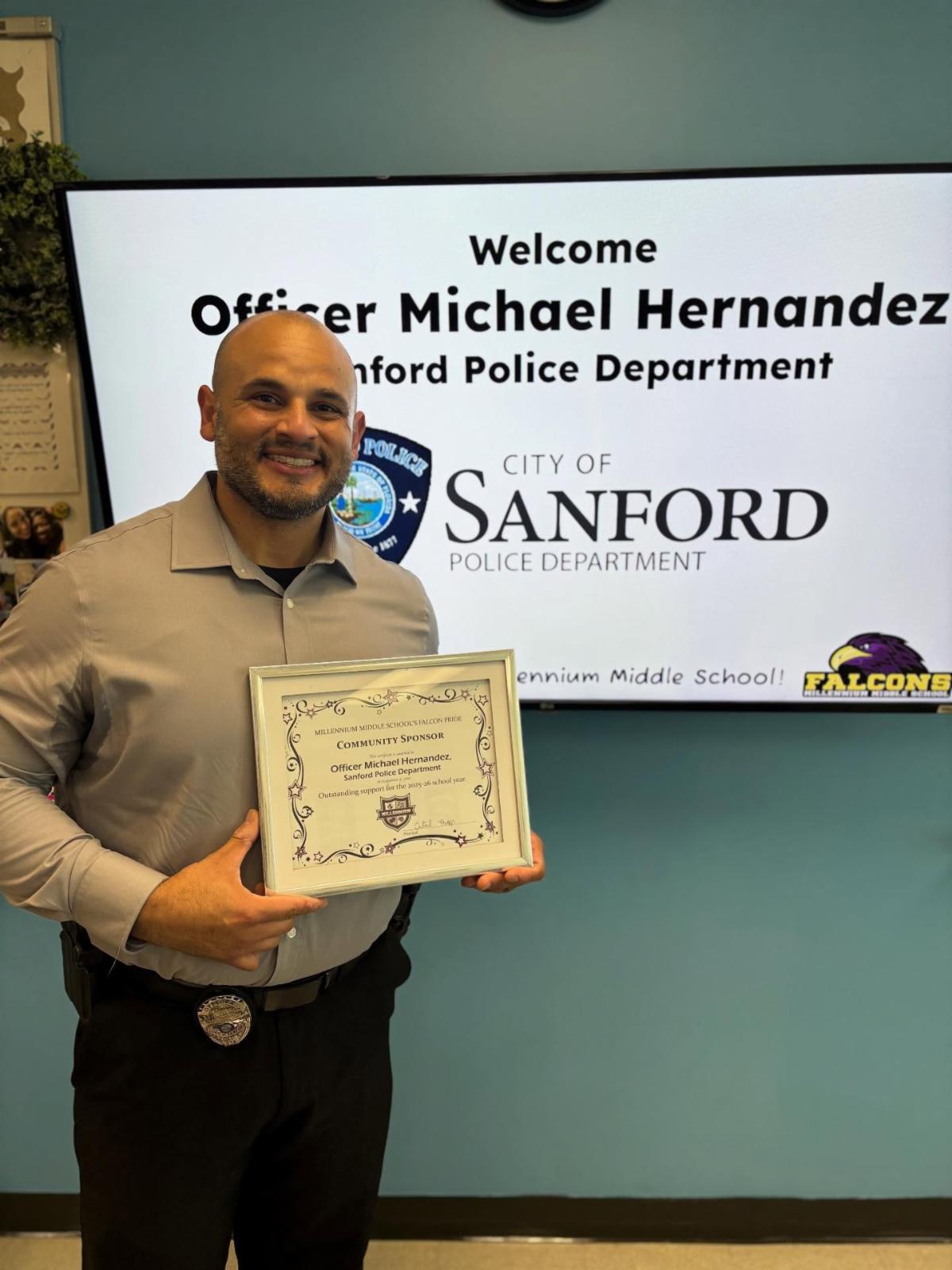 Thank you to Officer Michael Hernandez, Public Information Officer with the Sanford Police Department, for visiting Millennium Middle School again this year!