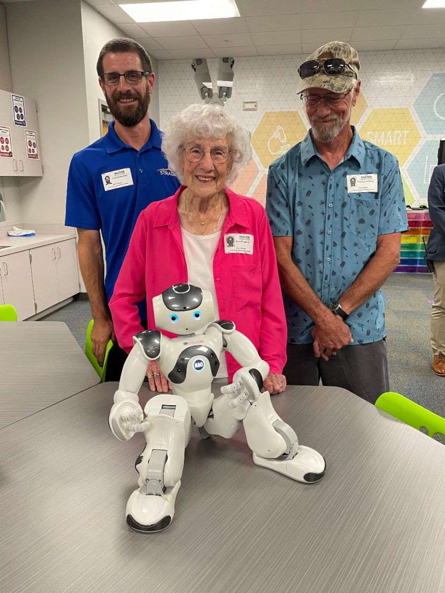 Dr. Ryan Gard-Harold, Principal, began her experience by welcoming her with a bouquet of flowers and a special banner to welcome her to Pine Crest. Ms. Duxbury was escorted by her son and grandson, both former Pine Crest students as well. She toured the robotics lab and met “Nao,” one of the many robots students work with at Pine Crest. She was also treated to an inside look at how students learn coding beginning in Kindergarten, their e-sports lab, and all about the K-12 pathways for students interested in e-sports.