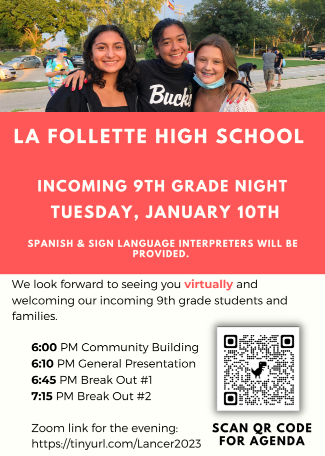 January 10th: La Follette High School 9th Grade Transition Information VIRTUAL Meeting