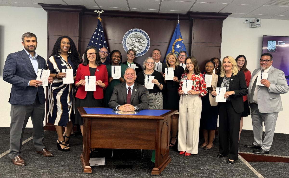 | | | BeHERE NV Advisory Consortium | | BeHERE Nevada is establishing an advisory consortium in accordance with Assembly Bill 37 and NRS 396.793. Meetings are subject to Nevada Open Meeting Law and more information will be posted on our website. | | Senate Bill 165 : SIGNED! | | Our Executive Director, Dr. Sara Hunt, and our Associate Director for Technical Assistance and Policy, Dr. Ashley Pruitt, were present when Governor Joe Lombardo signed Senate Bill 165. Sponsored by Senator Rochelle Nguyen, the bill creates a new bachelors-level Behavioral Health and Wellness Practitioner in Nevada. BeHERE was honored to join partners at UNLV, UNR, Great Basin College, and the Children's Advocacy Alliance for this special occasion. Stay tuned to BeHERE NV for more information about the education and career pathways for this new provider type! | | Leadership Academy Opportunity | | |