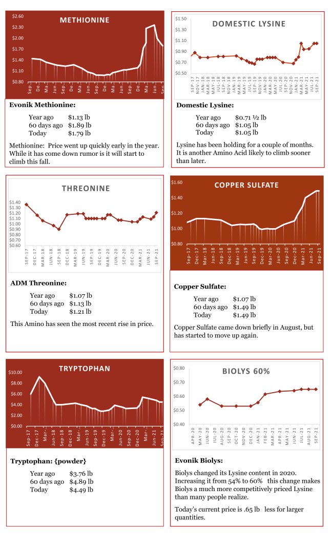 While it seems like prices have been stabilizing a little, most of the major Amino Acids are projected to be tight through the end of the year. To me, it feels like we are about to have another wave of 5-15% increases this fall.