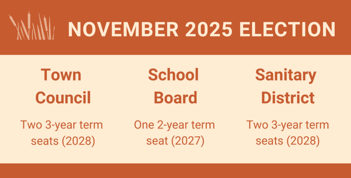 Save the date for Candidates Night for the November Election, which will be held on Tuesday, October 7 at 6:15pm for the Sanitary District, BOE, and Town Council. Moderator Kevin Freeman will introduce candidates and have them give opening statements and answer a series of questions. It will be in Council Chambers at Town Hall and recorded.
