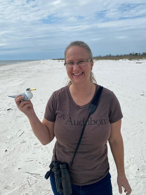Dr. Caroline Stahala is Audubon Florida's Coastal Bird Program Manager for the Florida Panhandle. Her focus is on helping local municipalities and property owners implement seabird conservation measures, educating locals, and garnering support for local nesting and wintering seabirds. Caroline has been involved in various bird conservation programs for over 20 years.