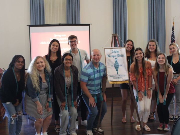 On April 20, 2022, the applied sociology department held its spring sociology award and Alpha Kappa Delta induction ceremony. During the ceremony, Dr. Damien Contessa presented applied sociology student (now alumna) Leah Daniels with the student of the year award. At the induction ceremony, the fourteen newest members of Alpha Kappa Delta were also honored to celebrate their accomplishments! | |
