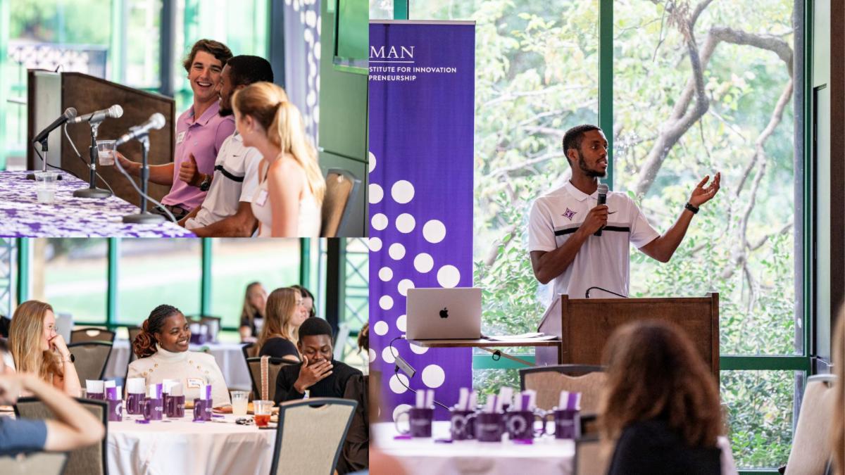 Our second annual Furman Innovation Dinner was a hit! The event brought together over 100 incoming freshmen, program alumni, and Furman faculty for an unforgettable exploration of innovation and entrepreneurship – including opening remarks from President Davis and a keynote address from last year’s Paladin Pitch Finalist, Ivan Agyaakwah.