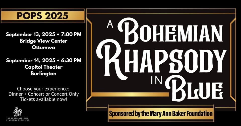 Downtown Burlington will come alive with a fusion of rock and classical brilliance as the Southeast Iowa Symphony Orchestra presents POPS 2025: Bohemian Rhapsody in Blue on Sunday, September 14.