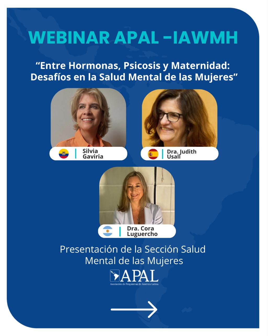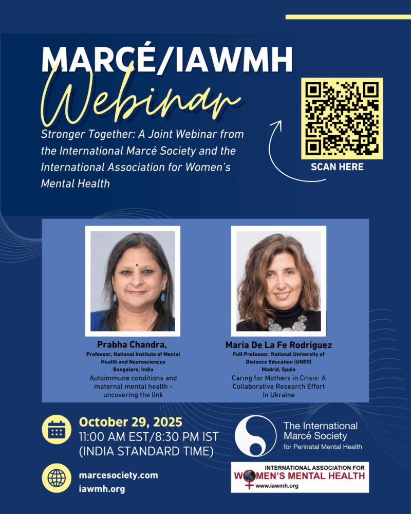 As part of our mission to foster collaboration with other organizations committed to women’s mental health, we are pleased to announce two upcoming webinars in the coming months: one in collaboration with Marcé Society, and another with Latin American Psychiatric Association (APAL).