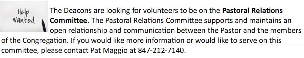 We are grateful to all those who considered being on the search committee as we move forward in the search for a settled pastor. We are especially happy that six members actually took their consideration to the next level and submitted a form bearing their name and who prayerfully answered the questions on the form.