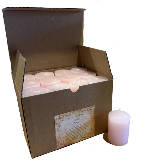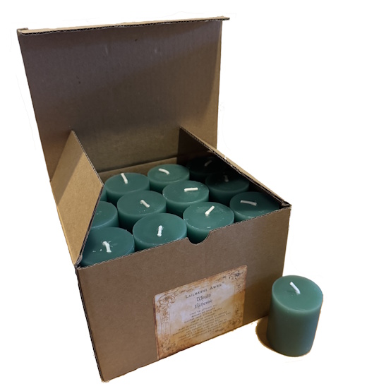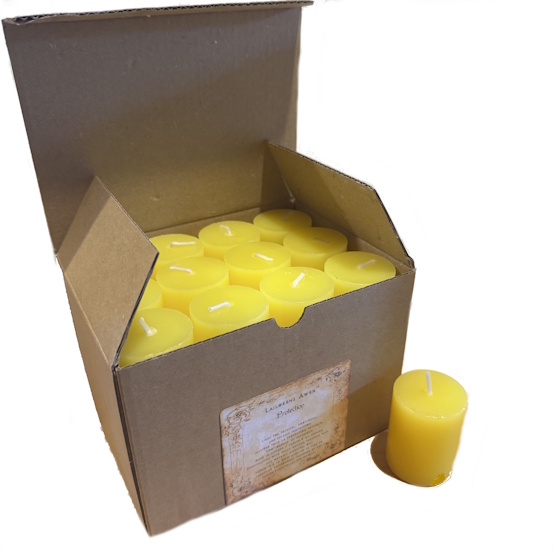 Each box contains 24 votive candles (1.5" x 2") and informational tear sheets for your customers.