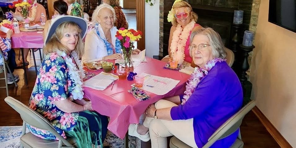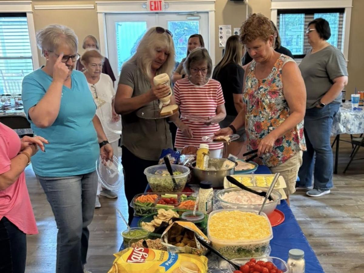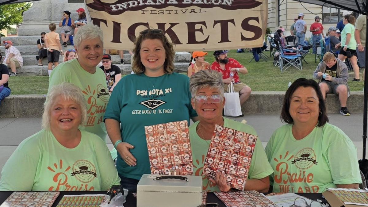 | | OMEGA, LEBANON, IN - Omega ladies found themselves in the middle of a crime scene at their 2025 Summer Picnic. While one sister was found guilty of the murder, all the rest were guilty of having a fantastic time together at the "Hulas and Homicide" event. | | GAMMA NU, BROWNSBURG, IN - The 75th Anniversary planning committee was hard at work preparing for their upcoming celebration. The group discovered lots of photos and information in scrapbooks created over the past 75 years. | | UPSILON, GREENFIELD, IN - Upsilon chapter held their annual picnic and auction in August. There was great food, wonderful sisterhood, and something for everyone at the auction. | | BETA PSI, DELPHI, IN - Members volunteered to sell tickets at the Indiana Bacon Festival in Delphi. Their shirts say, "Praise the Lard". | | OMEGA, LEBANON, IN - Received some of the book donations from National Convention to distribute in their community, but first, books need a nameplate acknowledging the donation from Psi Iota XI. | | ZETA THETA, FORT RECOVERY, OH - Members sold donuts at the Win on the Wabash Super Raffle. | | IOTA LAMBDA, FERDINAND, IN - Joined with other community members to welcome Forest Park students back to school and offer positive vibes for a safe and successful school year. | |