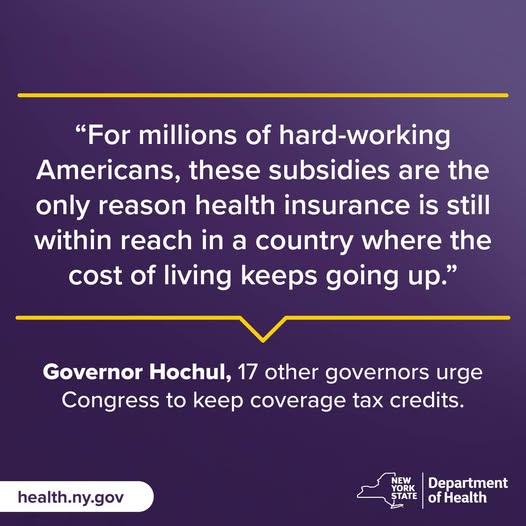 If Congress does not extend the Affordable Care Act’s enhanced tax credits, millions of Americans will see their healthcare costs spike. This number includes more than 140,000 New Yorkers using private insurance and 1.7 million New Yorkers on the Essential Plan, which is funded in part through these credits. Click here to learn more about what is at stake. Below are links to contact information for our representatives in Congress: