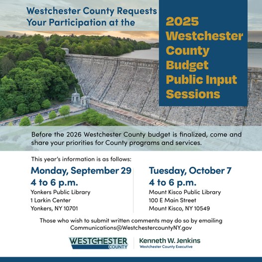 Westchester County is holding two in-person budget forums to hear about residents’ priorities for programs and services for the upcoming year: