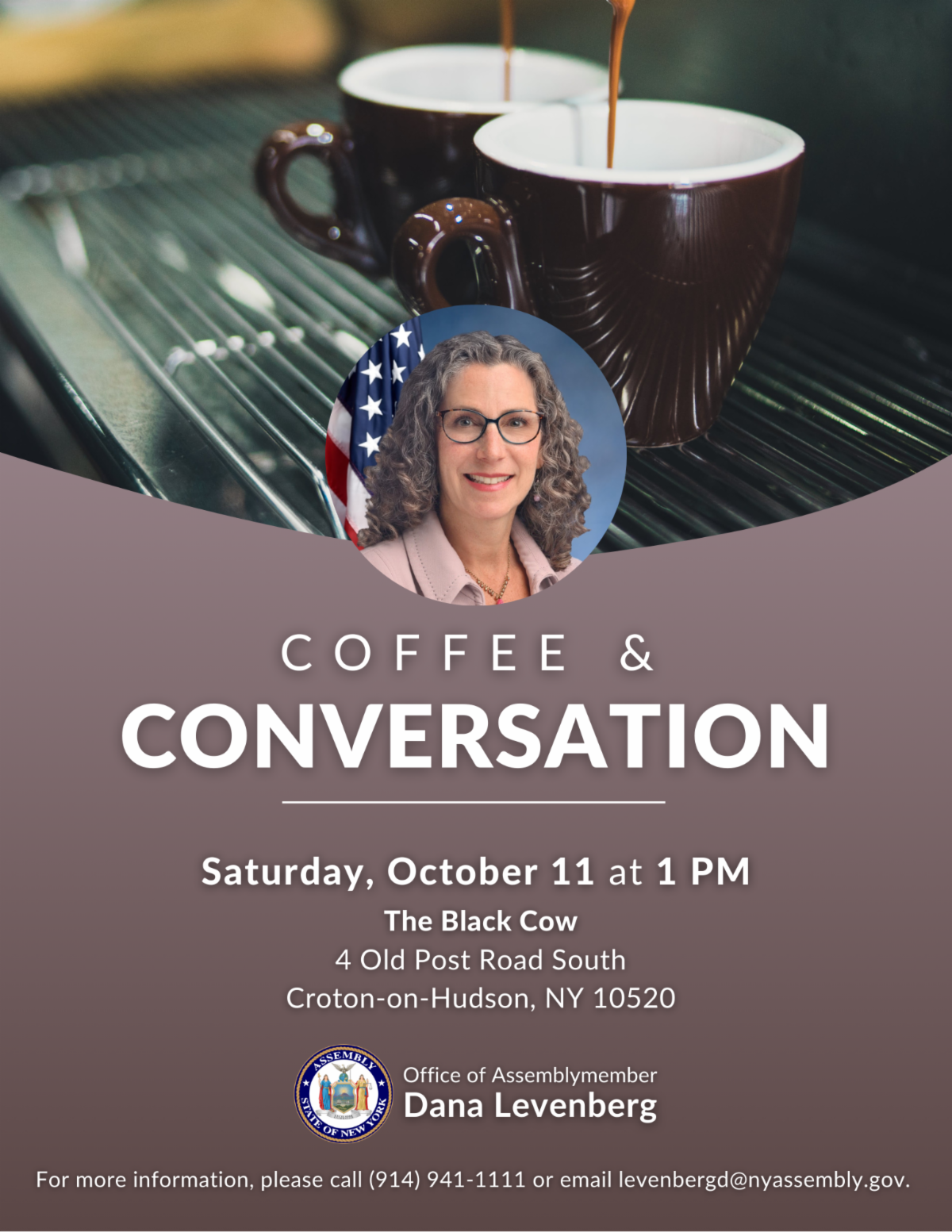 Save the date - I’ll be hosting a coffee and conversation event at the Black Cow in Croton on Saturday, October 11 from 1-2 PM. Hope to see you there!