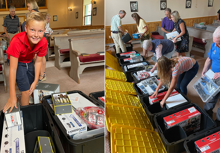 Members of Christ the King, Quincy recently held a work party to assemble ten (Re)Start Kitchen bins – proving that many hands make light work! These will be staged for distribution to victims of the next disaster in our diocese. Thanks for your contribution to the effort! | |