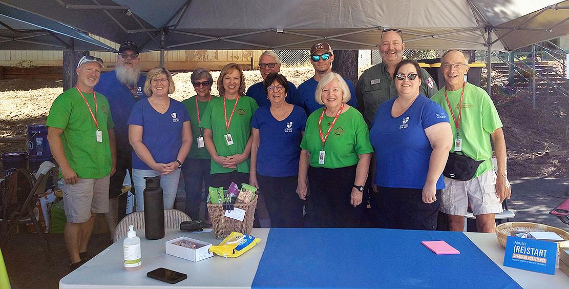 On Monday, September 26, Episcopal Disaster Assistance Response Team (DART) members (in blue shirts) joined with members of the United Methodist Committee on Relief (in green shirts) to offer assistance to survivors of the Mosquito Fire. The blaze has burned 76,755 acres in Placer and El Dorado Counties, making it the largest fire in California so far this year. 35 (Re)Start bins from St.John's | Marysville, Trinity | Sutter Creek, St. John's | Chico, Faith | Cameron Park, St. James | Lincoln, and St. Clements | Rancho Cordova were distributed to fire victims. | |