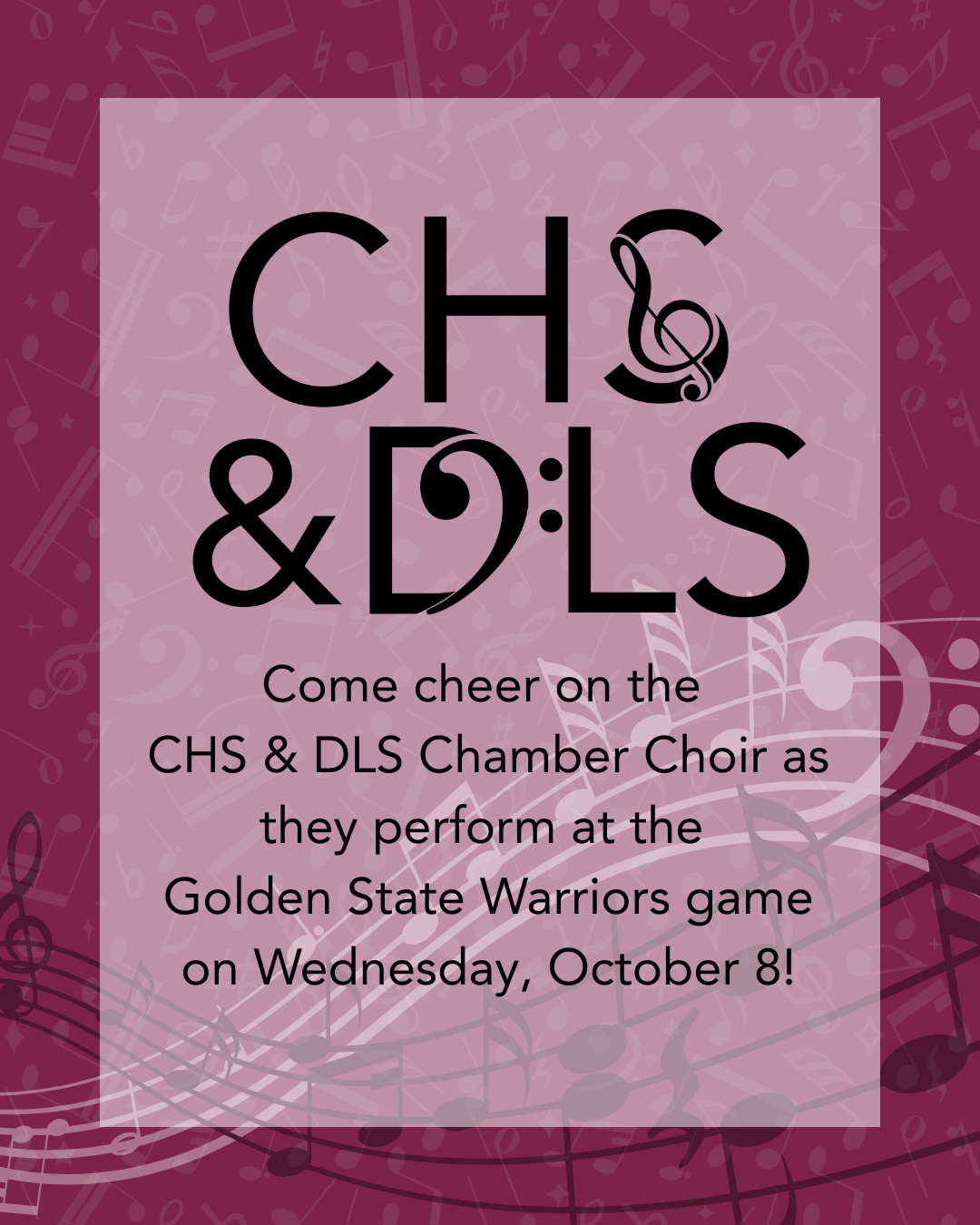 Don't miss out on your chance to see the CHS & DLS Chamber Choir perform at the Golden State Warriors' Carondelet School Night! It'll be an exciting night filled with Warriors basketball, in-game activations, and more.