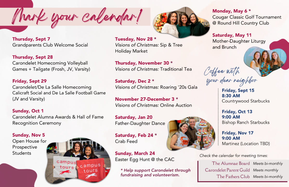 This Labor Day weekend kicks off a busy September. Academics, athletics, and student activities are in full swing and building momentum. The School Calendar on the Carondelet website is a good resource to keep up with all that is occurring on campus. You can also “subscribe” by clicking the red button under the monthly calendar to feed our events and schedules into your personal electronic calendar. Visit our new Carondelet Athletics Website and follow us on Instagram (@carondeletcougars) to keep in touch with Cougar Athletics.