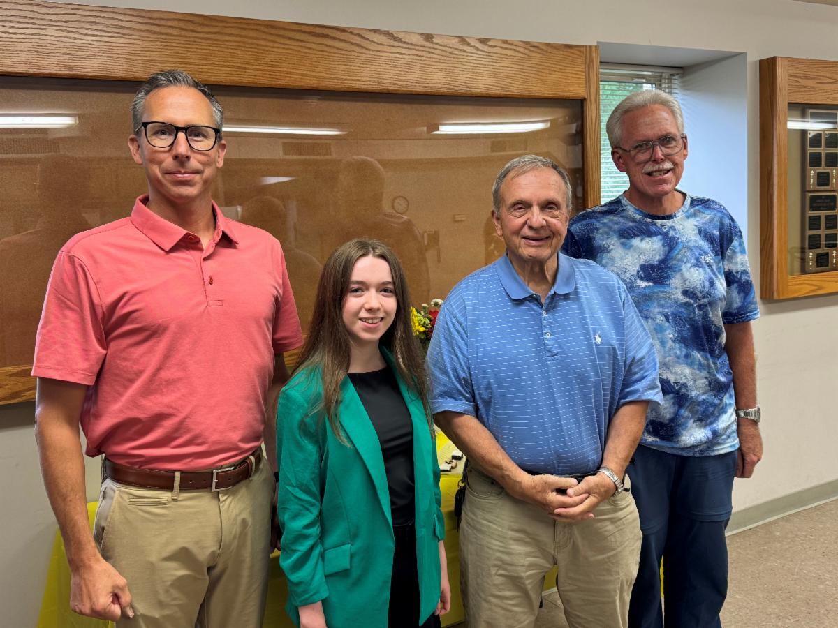 Darah Moreland presents to Extension Agriculture Committee | | Commissioner David Sharpe, Darah Moreland, Commissioner Dr. Steve Highlander and Frank Heery | During the August Ag Committee meeting Darah Moreland, Senior High 4-H member, shared her 4-H experiences. The Ag Committee members were impressed with her experiences and depth of knowledge related to her 4-H project – Entomology and Beekeeping. She also shared her experiences attending national meetings with 4-H including the Southern Region Teen Leadership Conference and 4-H Ignite! Conference. Darah is a state Level 1 winner in Entomology, Honor Club member and All Star member. | | |