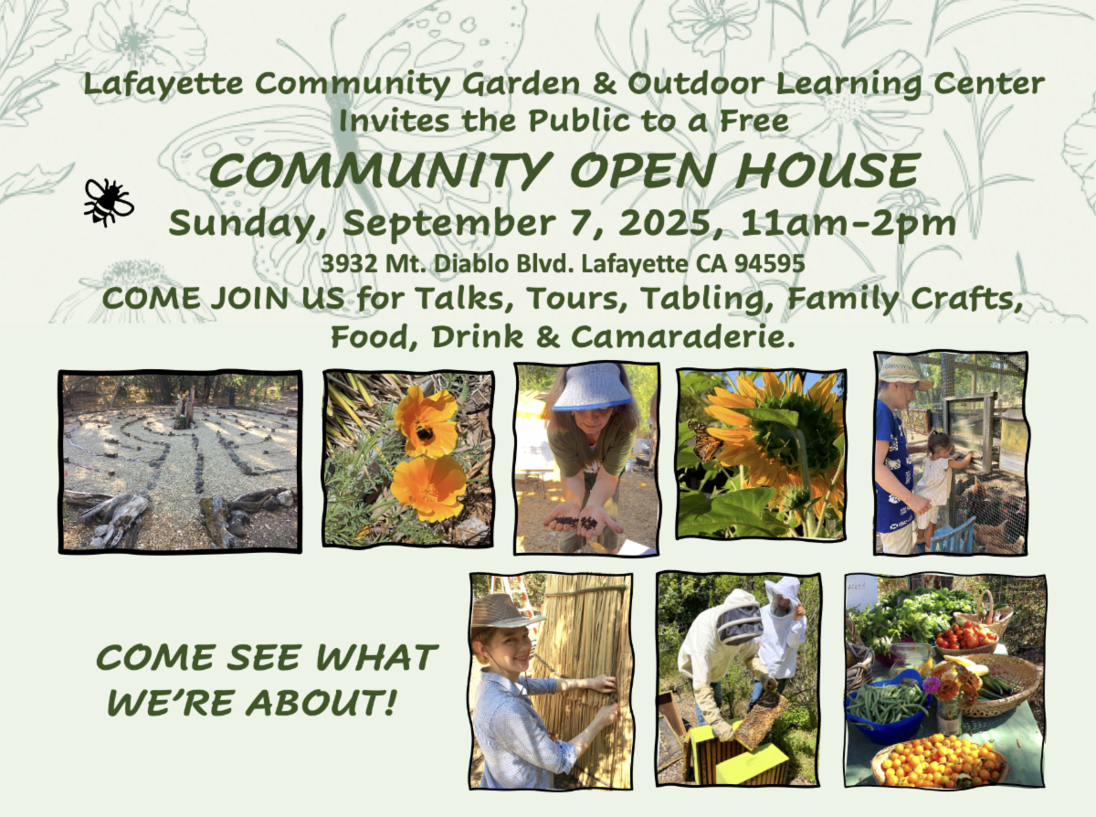 The Lafayette Community Garden & Outdoor Learning Center provides a space a for visitors and members to learn about, care for and connect to the local ecosystem and food grown within it, thereby promoting a healthier community and Earth.