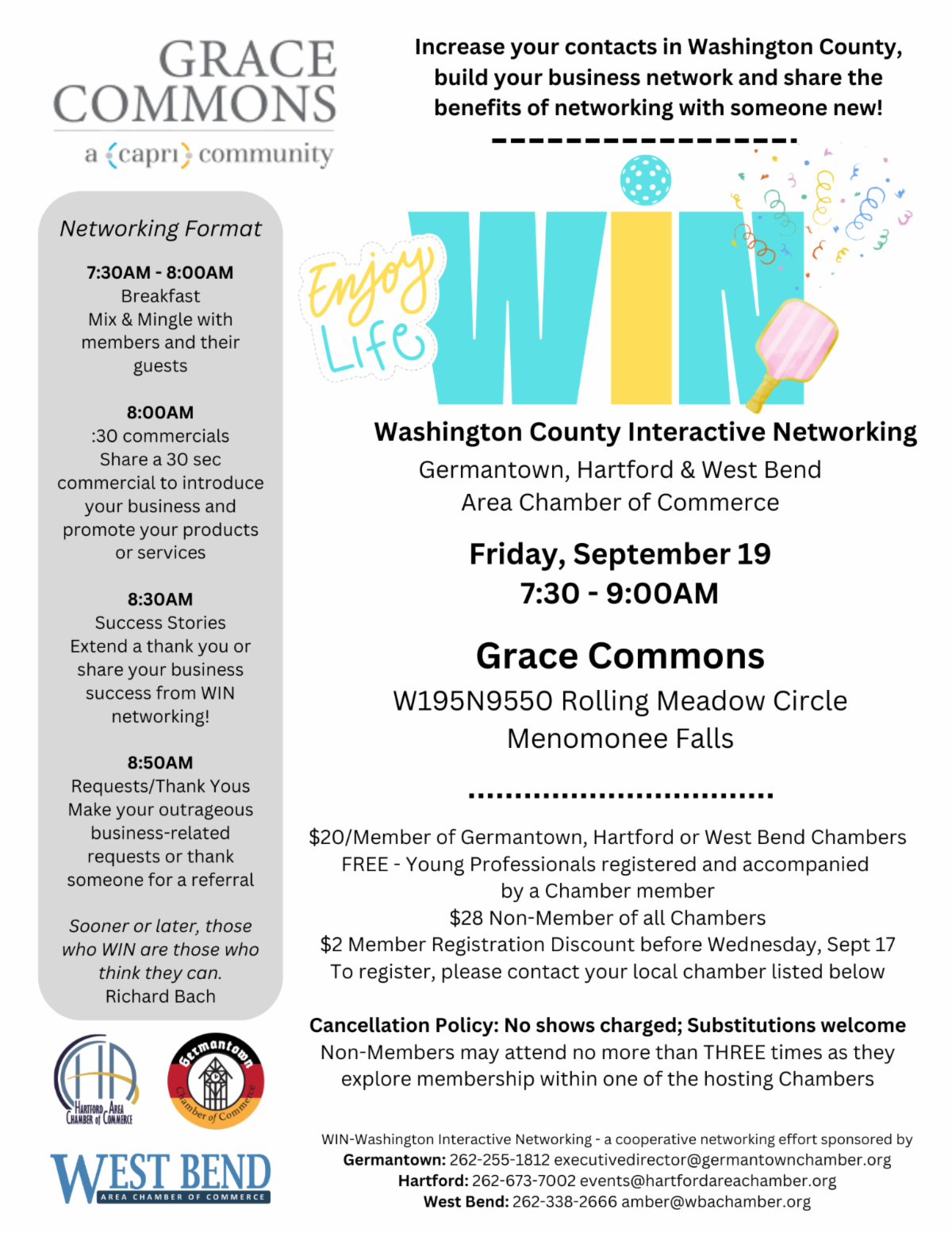 Join us for WIN Networking this month with Germantown, Hartford & West Bend Chamber members!