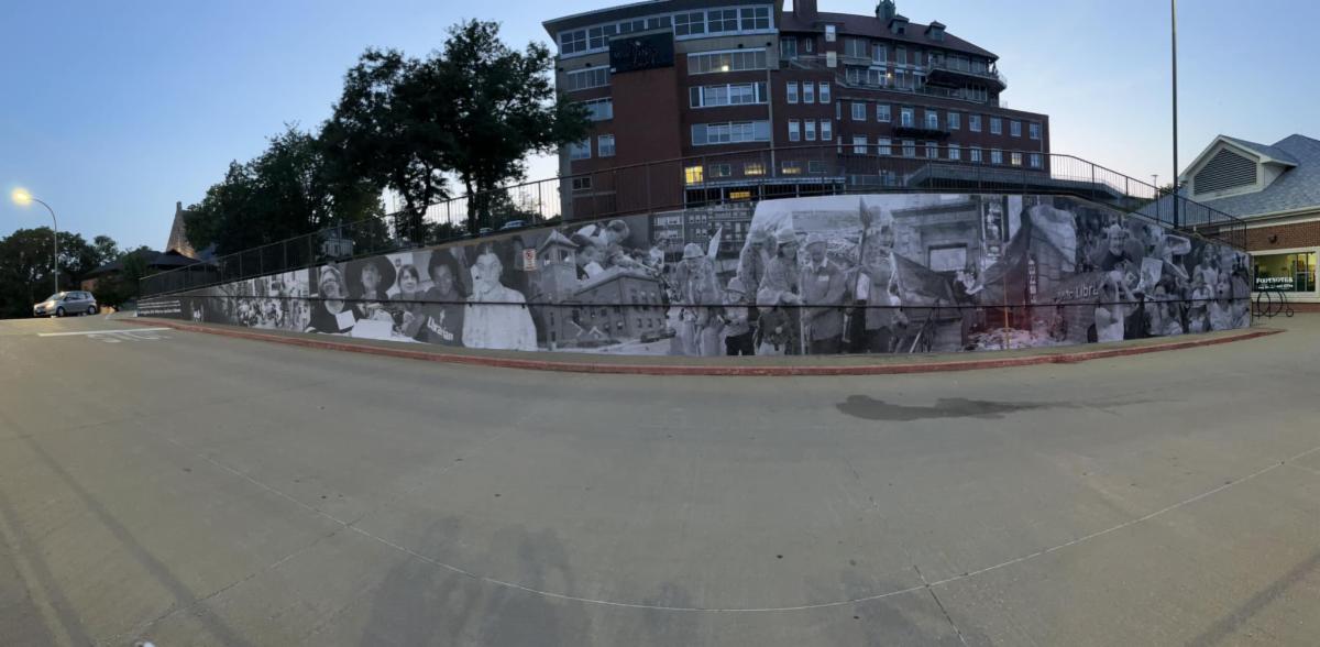The Burlington Public Library has a Wheat Paste Mural highlighting their rich history at the entrance of the library. If you haven't visited it yet, stop by and see if you recognize any of the faces.