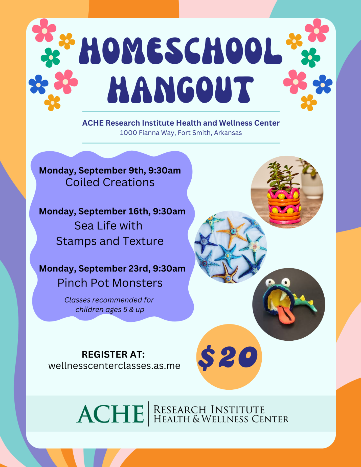 Sept. 23: Homeschool Hangout (kids), 9:30a Pinch Pot Monsters