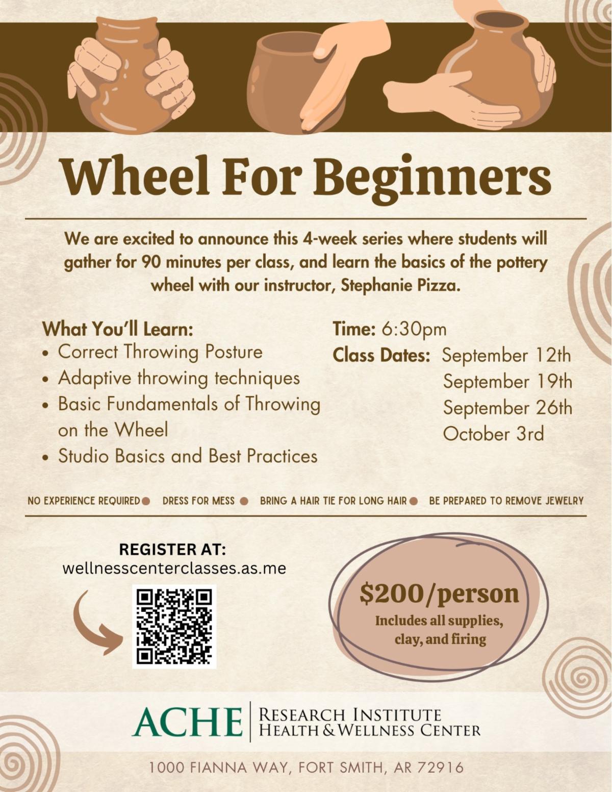 Sept. 27: Wheel Class (adult), 6:30p