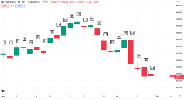 S&P 500 Index (SPX) - Daily Chart - Aug 1 - 31, 2022 (Source: Tradingview)