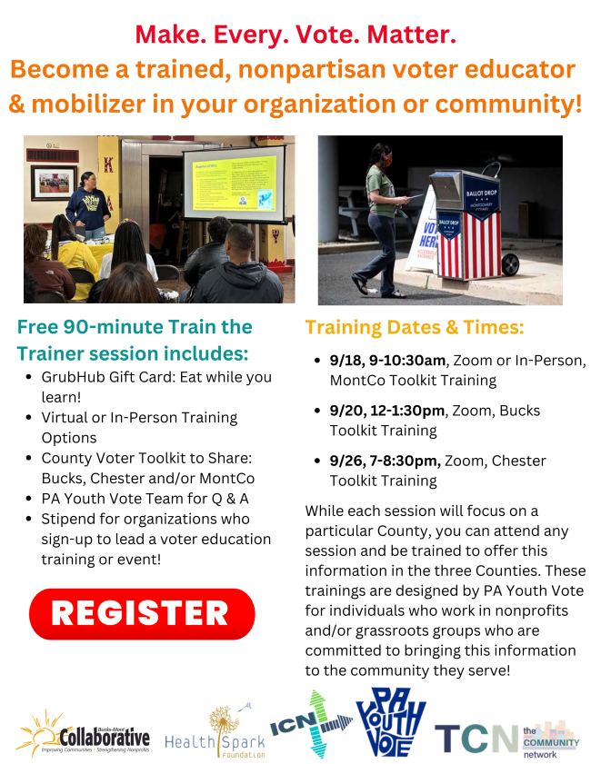 Please continue to keep us informed of what's happening with you in Bucks and Montgomery Counties. The information here comes from you, with links to our website for more complete information and resources. Send your events and updates to Kristyn: kristyn@bucksmontcollab.org. Thank you!