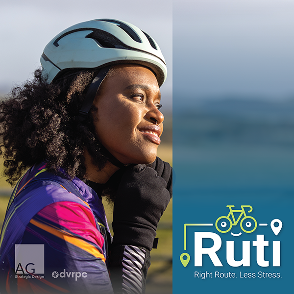 Ruti, a collaboration between AG Strategic Design and DVRPC, is a user-friendly bicycle trip planning tool to help encourage more bicycling in the Greater Philadelphia region. Originally launched in 2021 as a text-message-based trip planning tool, Ruti recently expanded to offering trip planning on the web too. Where the original Ruti version relied on Google Maps route options, both the web trip planner and the text-based planner now fully incorporate DVRPC’s Bicycle Level of Traffic Stress (LTS) analysis to evaluate every possible route between any two locations and identify the “least stressful” option.