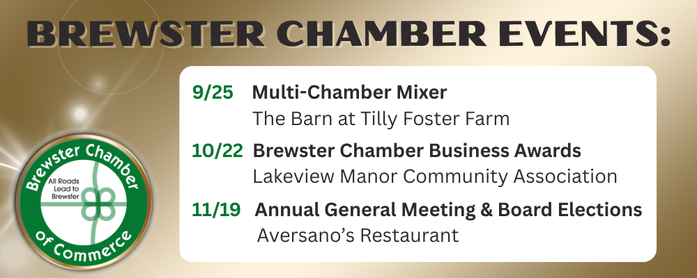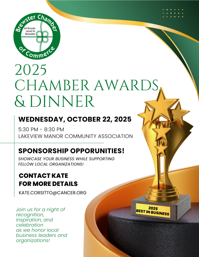 Join us for a night of recognition, inspiration, and celebration as we honor Brewster Chamber business leaders and organizations! Catering by Aversano's Restaurant. Signature mocktails included.