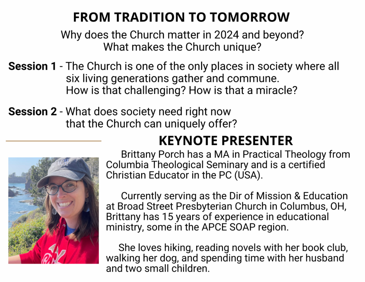 Our hope is to use this time to connect us with one another and with the greater denomination. What a gift that Cece will grace us with a lasting Word! Please feel free to ask me or the FPC Statesboro staff any questions and circulate this opportunity widely!