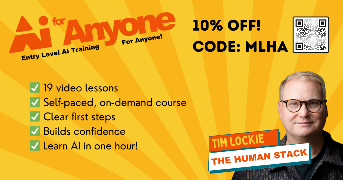 Tim’s course, AI for Anyone, is a 60-minute, hands-on training session built for beginners. View the course here: https://thehumanstack.com/academy/aiforanyone. MLHA members get 10% off with code MLHA.