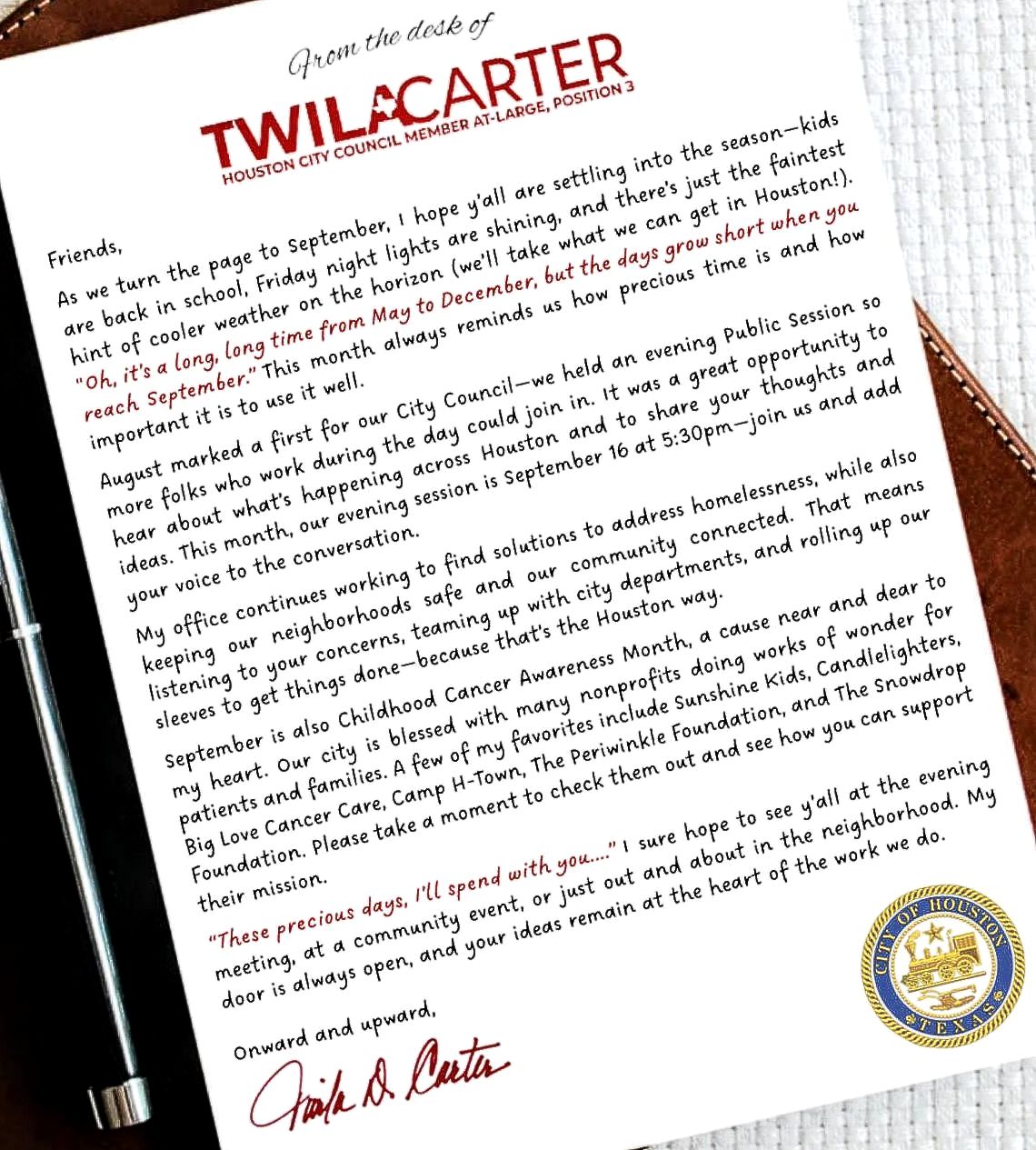 These community-driven events highlight the power of collaboration and the importance of meeting residents where they are. Council Member Carter remains committed to ensuring all Houstonians have the tools and connections they need to thrive.