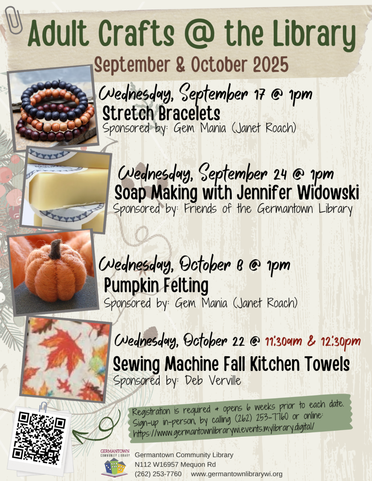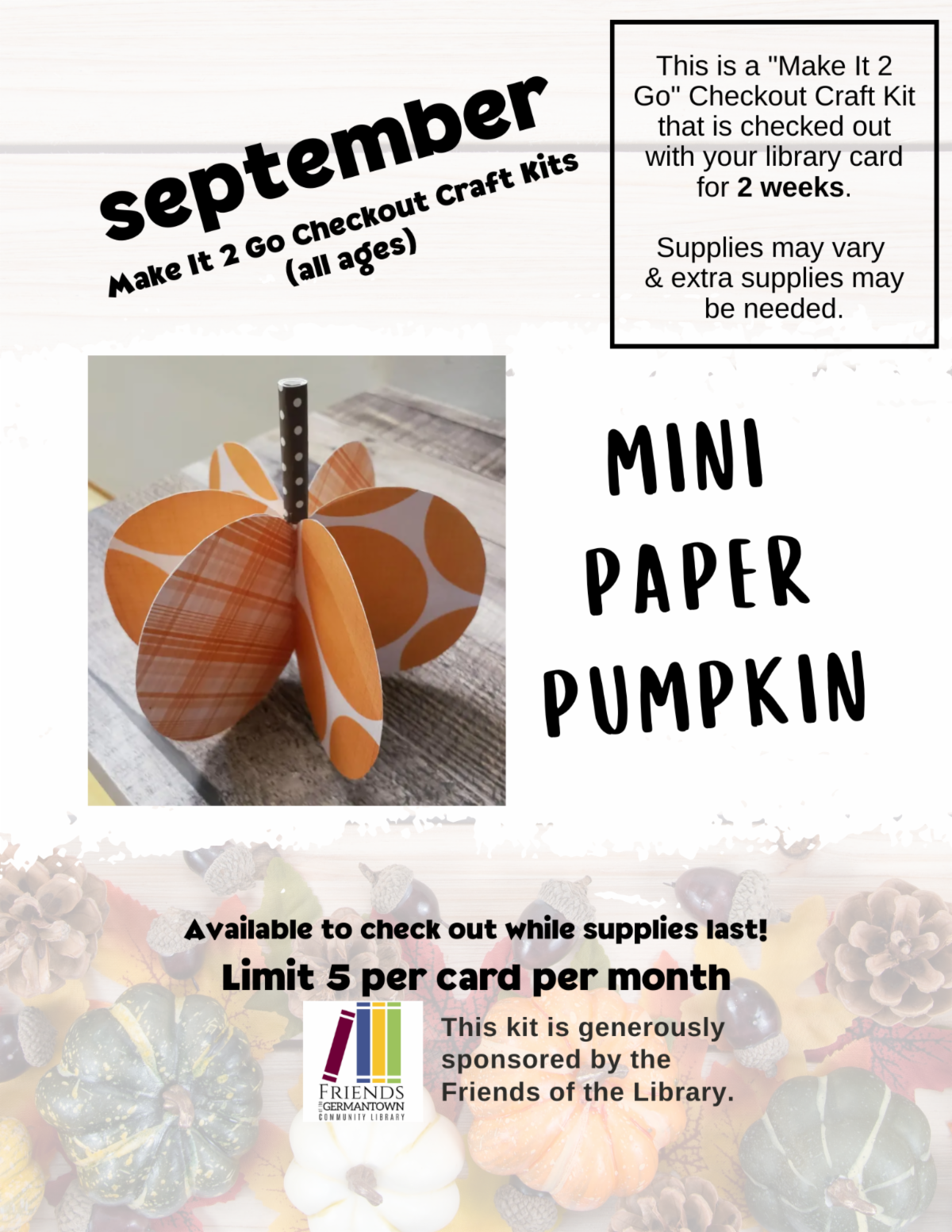Thank you for supporting the Germantown Community Library. Please feel free to contact myself or a staff member if you have any feedback or suggestions.