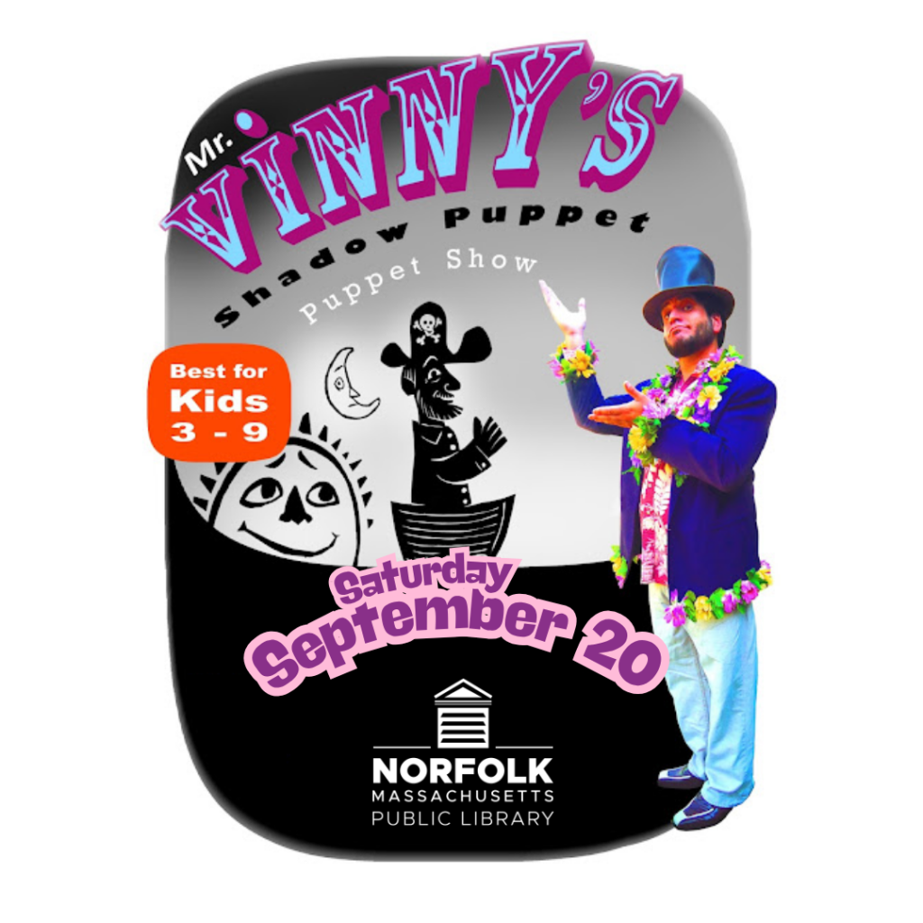 Come one, come all, for a program of interactive, shadowy storytelling with NPL favorite Mr. Vinny (of Toe Jam Puppet Band fame!). This program, recommended for children ages 3-9 (and the young at heart) is open and free-no registration require.