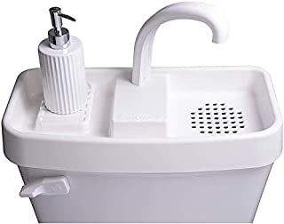 Here's an innovative way to conserve water, at home and in the dealership. A sink to wash your hands is integrated into the toilet tank lid. The used water then drains into the tank to be emptied with the next flush!