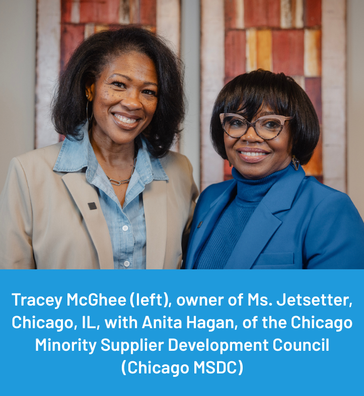 Big ideas take flight when entrepreneurs have the right support. This month, discover how Tracey McGhee grew Ms. Jetsetter with guidance from ChicagoMSDC, explore how AI can become your “virtual team” in our Webinar Wednesday, and find upcoming events, resources, and opportunities—from the Federal Reserve’s Small Business Credit Survey to Cook County’s Veterans Resource Fair at Brookfield Zoo. There’s plenty here to inspire, connect, and equip you on your business journey. | | Ms. Jetsetter takes flight thanks to Chicago Minority Supplier Development Council | |